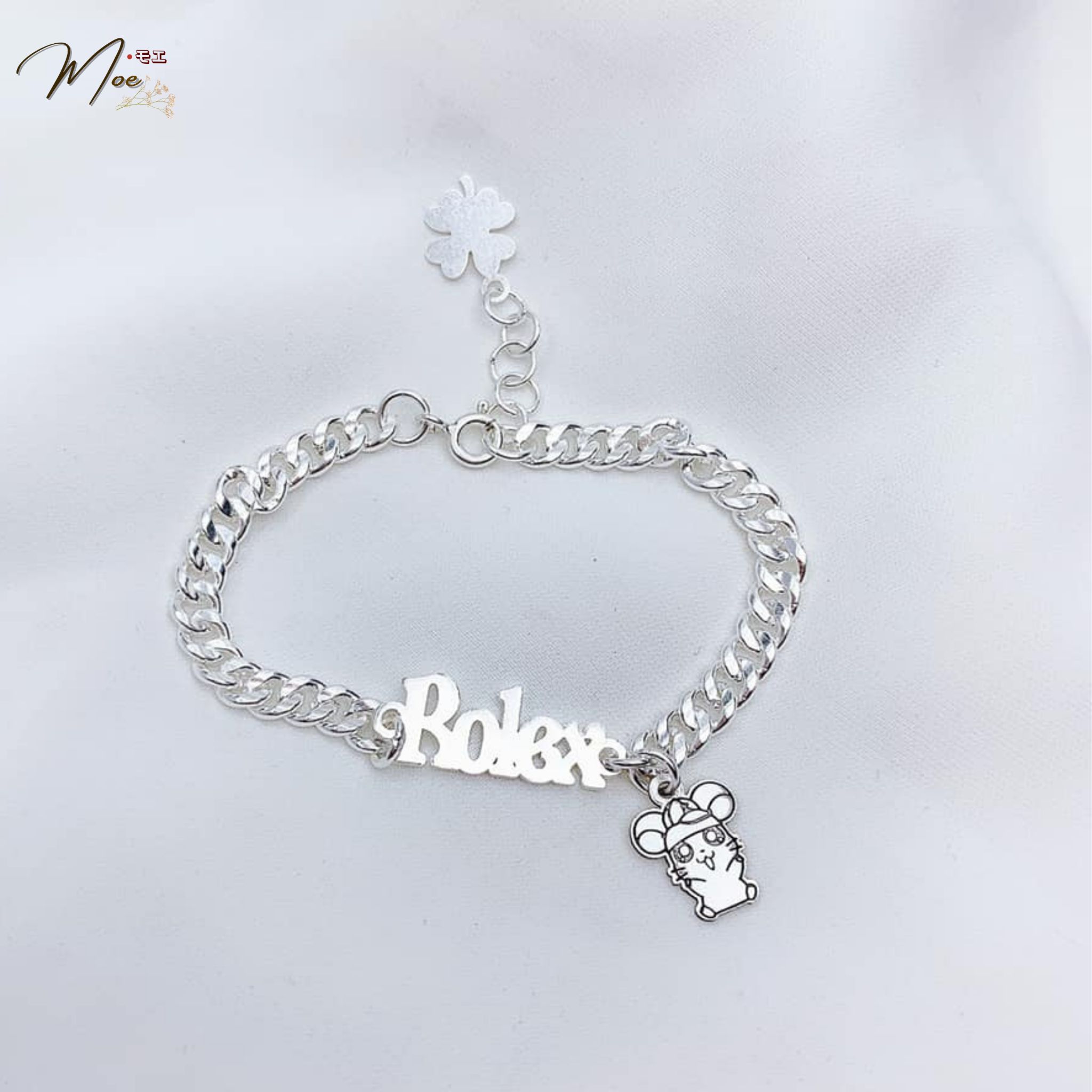B26 - Lắc tay vòng trơn khắc tên kèm charm