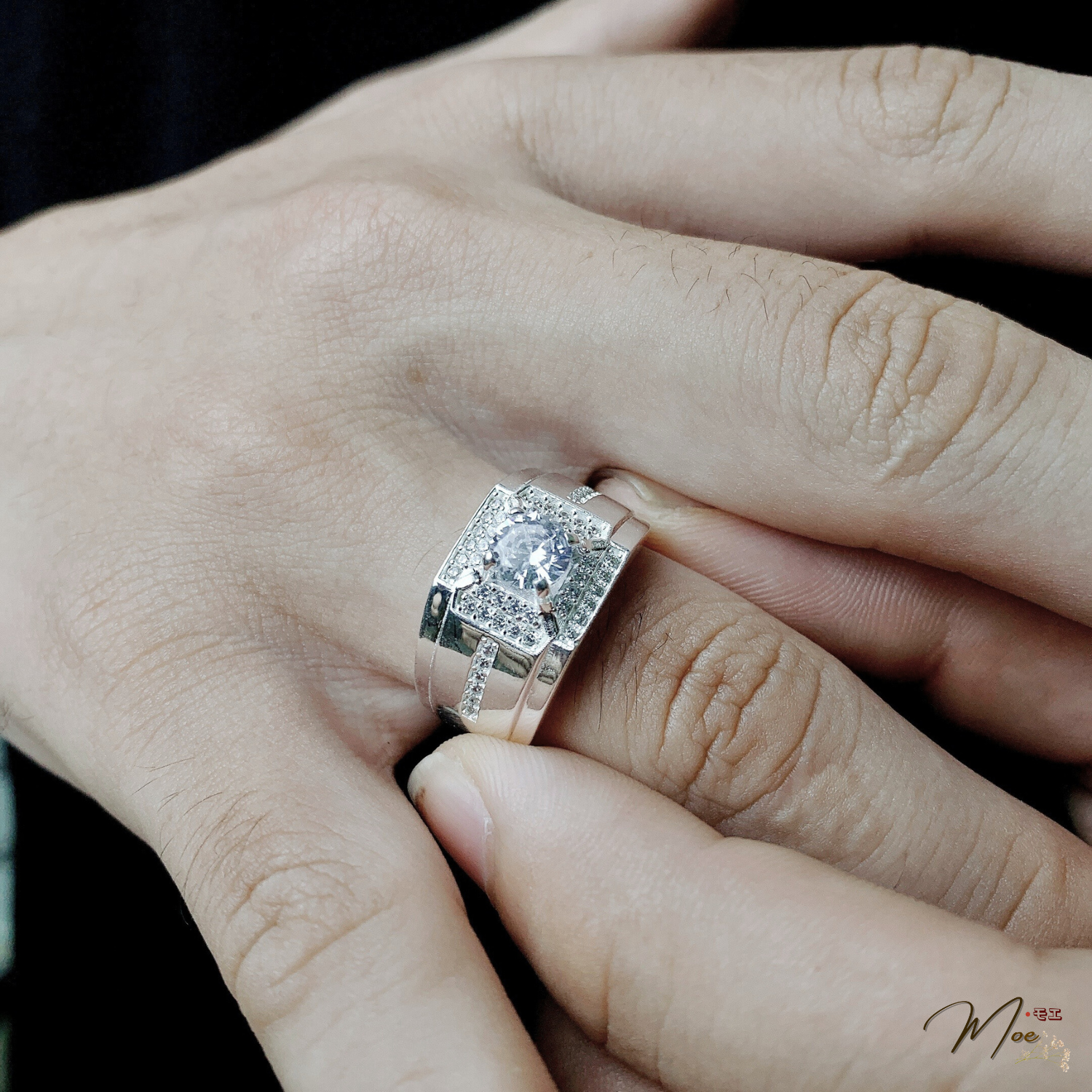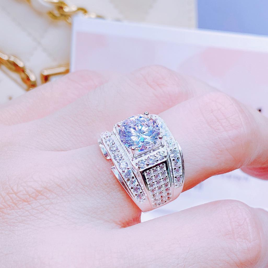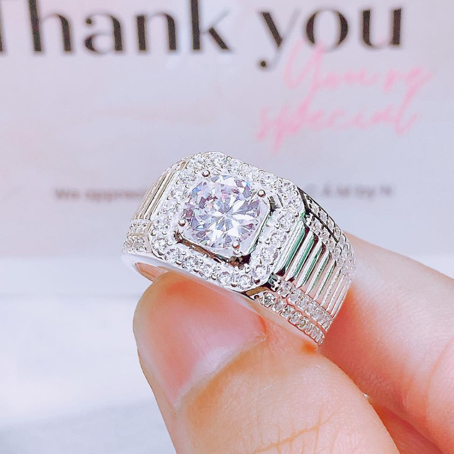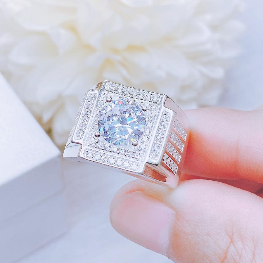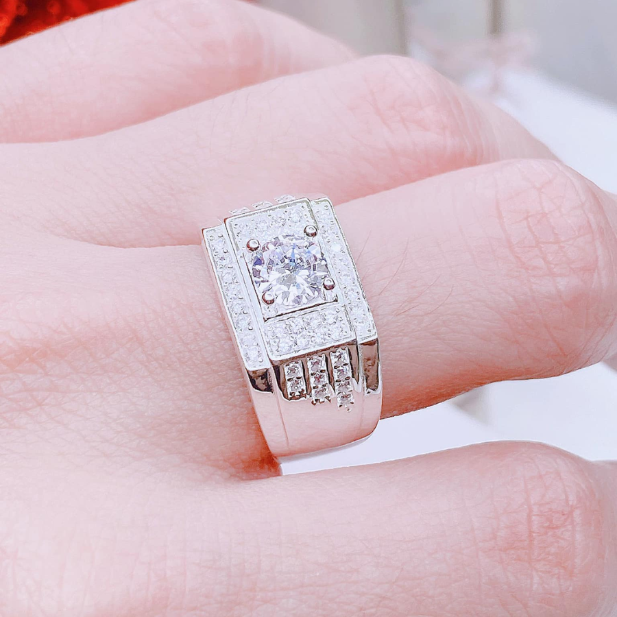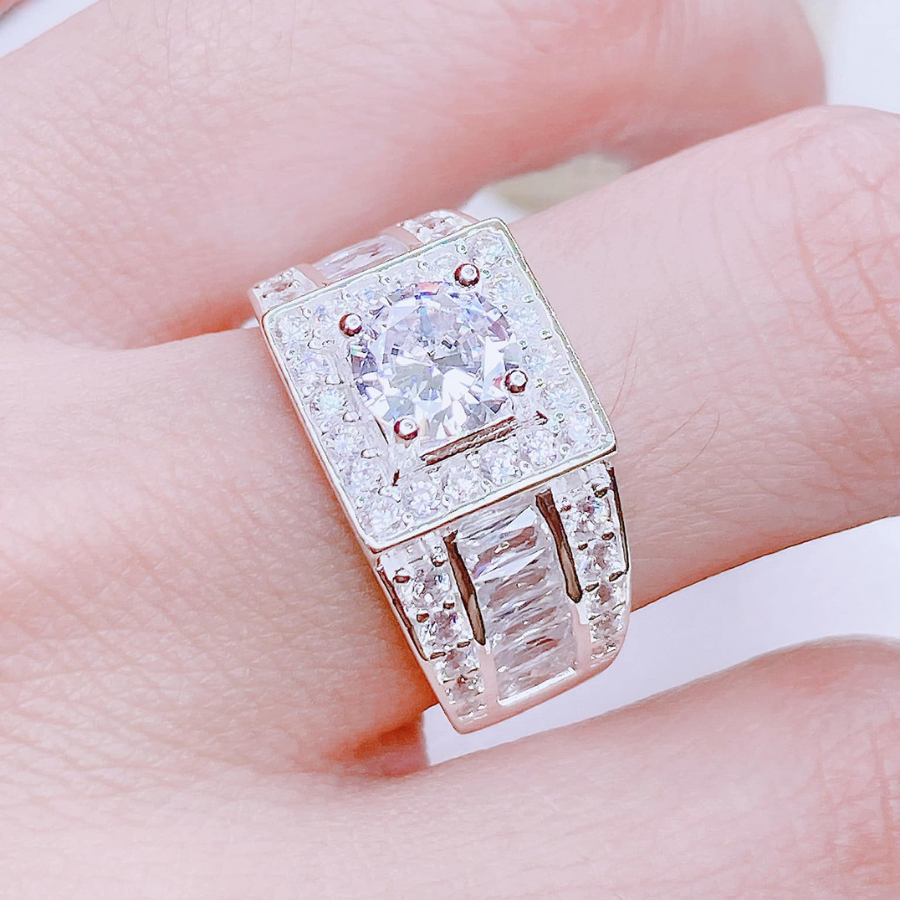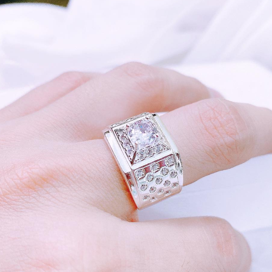 NN16 - Nhẫn nam đá chủ vuông nạm full đá