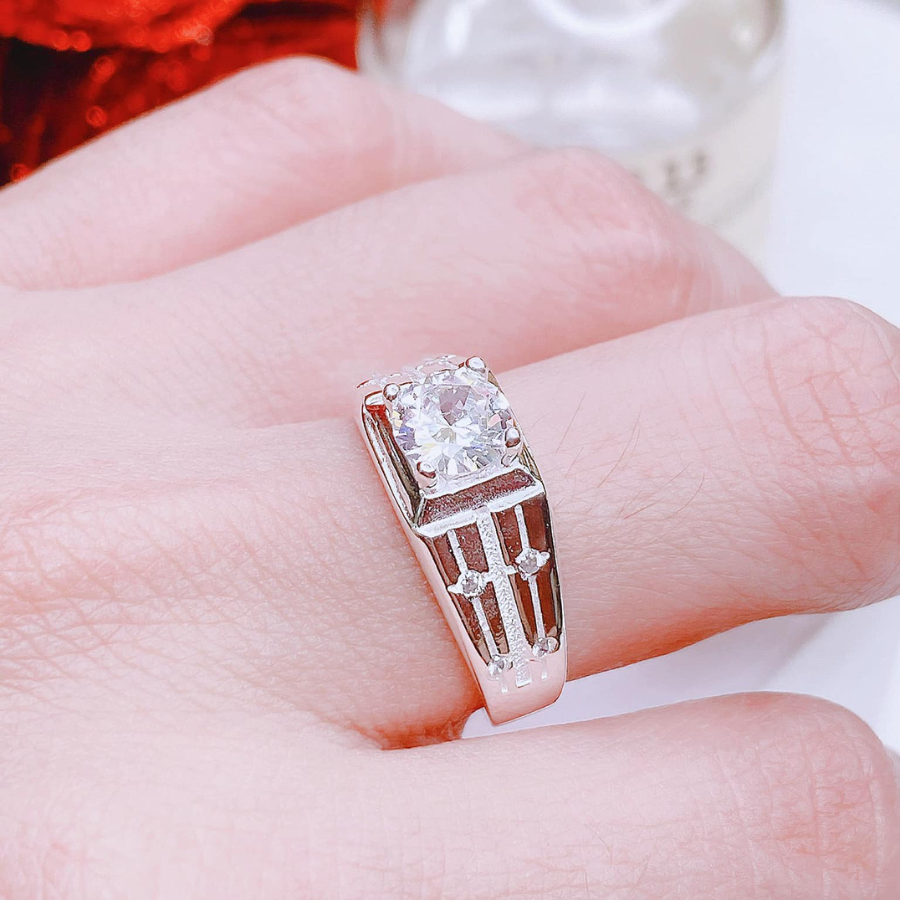 NN38 - Nhẫn nam đá chủ viền khuyết dải đá