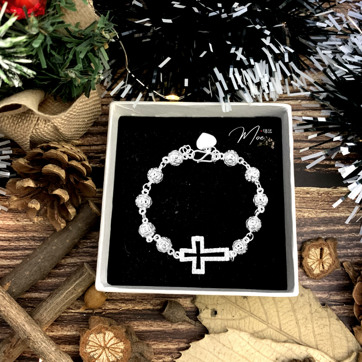 LT368 - Lắc tay bi tròn bạc thánh giá rỗng