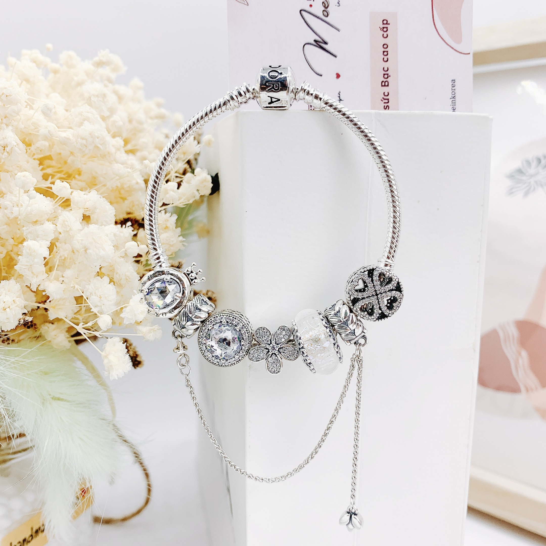 LT196 - Vòng pandora trắng hoa tuyết ngọt ngào