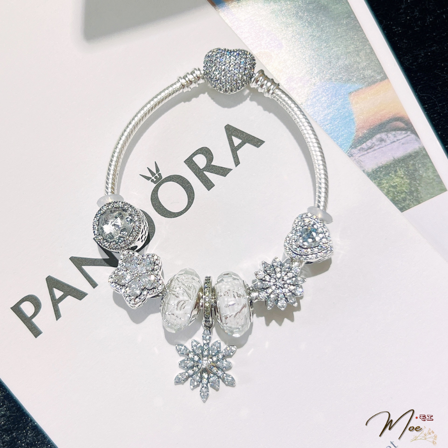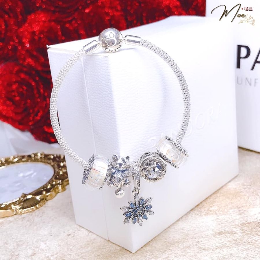 LT192 - Vòng pandora xanh lục lam bông tuyết