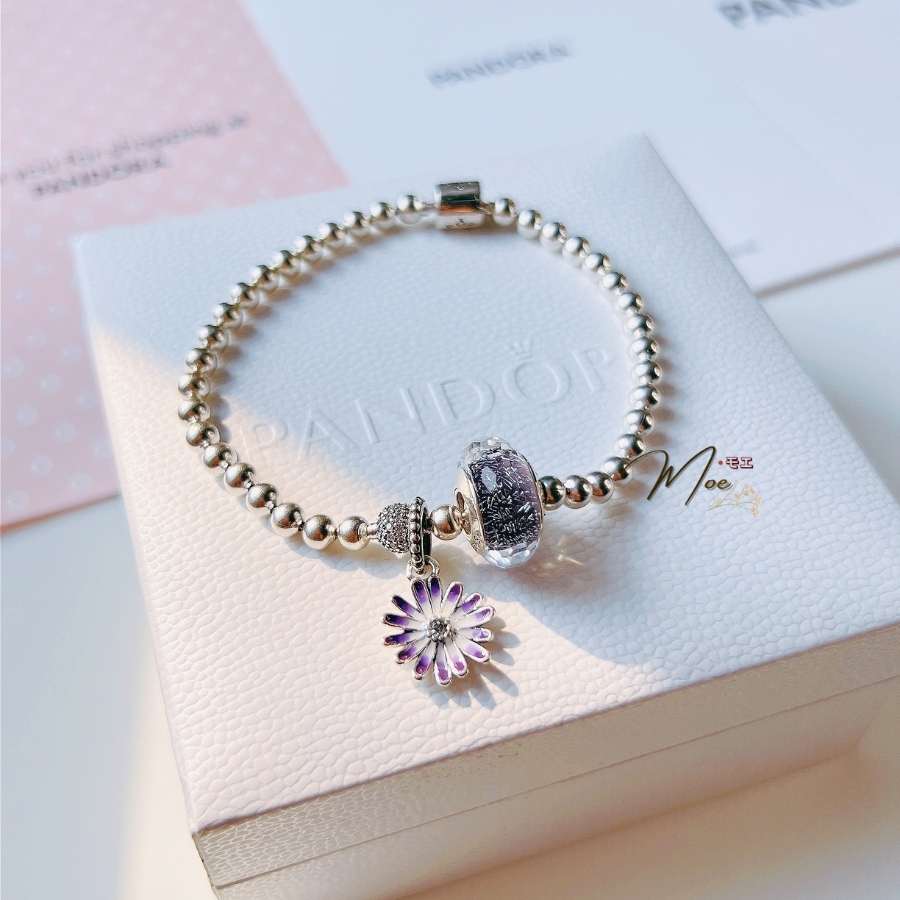LT186 - Vòng pandora hoa cúc tím