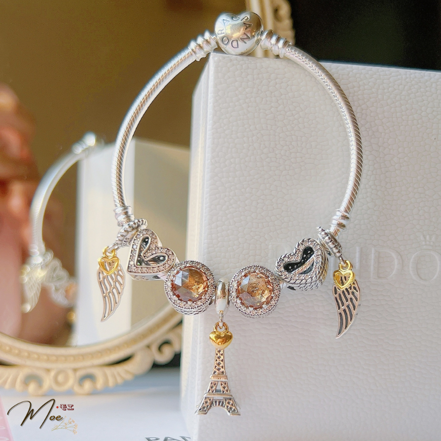LT198 - Vòng pandora vàng tháp eiffel cánh thiên sứ