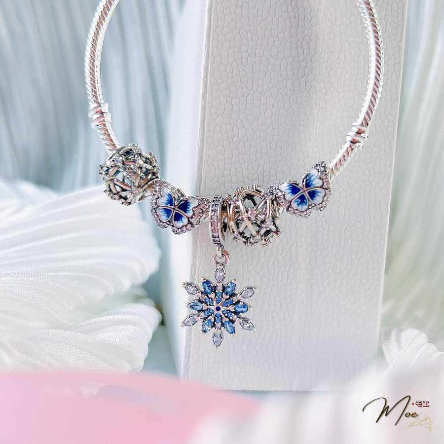 LT195 - Vòng pandora xanh bông tuyết bướm điệu đà
